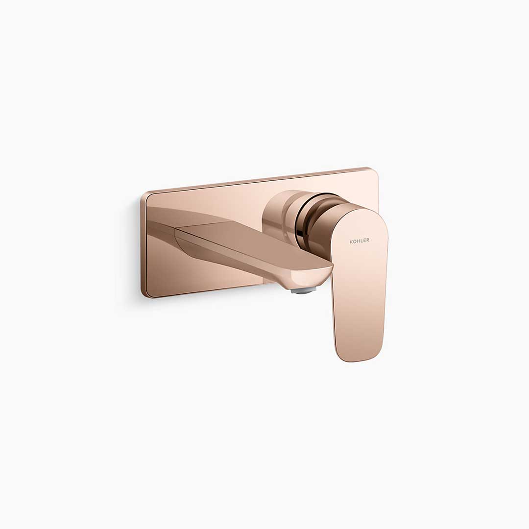 Where simplicity and beauty collide, the Aleo® wall-mount bathroom sink faucet was thoughtfully designed to offer you a truly modern experience. With a flat-surface Lever handle and sleek spout, this faucet exudes minimalism while being convenient and reliable for everyday use. With premium metal construction that resists corrosion, this faucet was built to last.Features Single Lever handle allows for on/off activation, volume, and temperature control. 16 cm (6.3 inch) spout reach. 10.8 gpm (40.9 lpm) at 43.5 psi (3.0 bar). Laminar flow. Valve included. Coordinates with other products in the Aleo® collection.