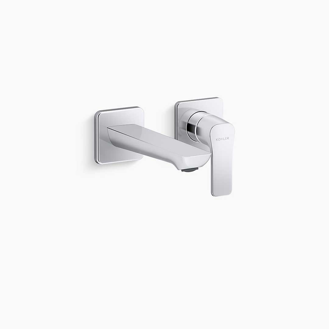 Bold in stature with neo-modern expression, the Fore Tri™ wall-mount bathroom sink faucet brings sleek sophistication to your bathroom. This futuristic-looking faucet with hidden aerator features a thin Lever handle for easy-to-grip, ergonomic control of temperature and water volume. A clean silhouette, this single-handle bathroom sink faucet blends design with more-sustainable performance for the ultimate user experience.Features Single handle provides on/off activation, volume, and temperature control. Red/blue indexing on handle. 15.8 cm (6.25 inch) spout reach. 9.0 lpm (2.38 gpm) maximum flow rate at 3.0 bar (43.5 psi). Drain sold separately.