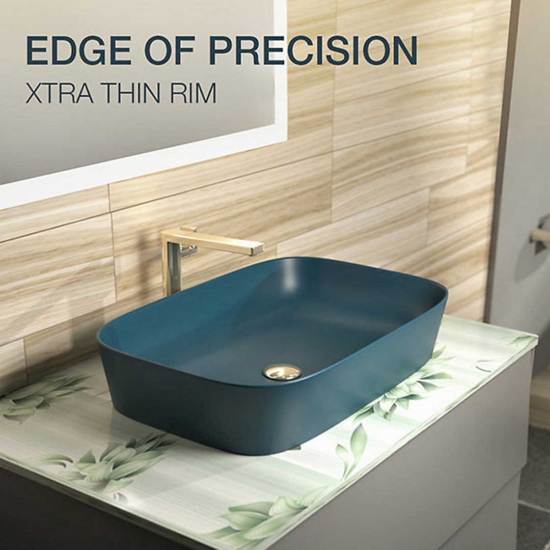 The ModernLife Edge® collection combines thoughtful design with a contemporary and minimalist form. This 60 cm rectangular vessel bathroom sink offers a unique aesthetic, with a rimless form that is easy to clean and complements most bathroom styles. For a beautiful and complete setup, coordinate your new sink with a compatible wall-mount or tall deck-mount bathroom sink faucet.